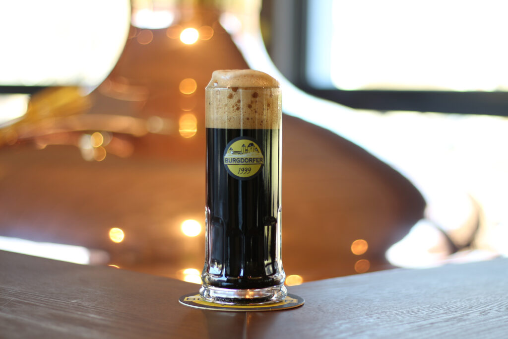 Das tiefschwarze Stout duftet nach dunkler Schokolade, Karamell und frisch geröstetem Kaffee. Die ölig-viskose Textur verleiht dem Spezialbier einen samtig-weichen und cremigen Körper. Die Kombination aus Röstmalz- und Hopfenbittere sowie das fruchtige Aroma der sorgfältig ausgewählten Hopfensorten verleihen dem Bier das gewisse Etwas. Zu diesem Stout passen kräftige, würzige Speisen wie Schweinsbäggli oder Wildburger.